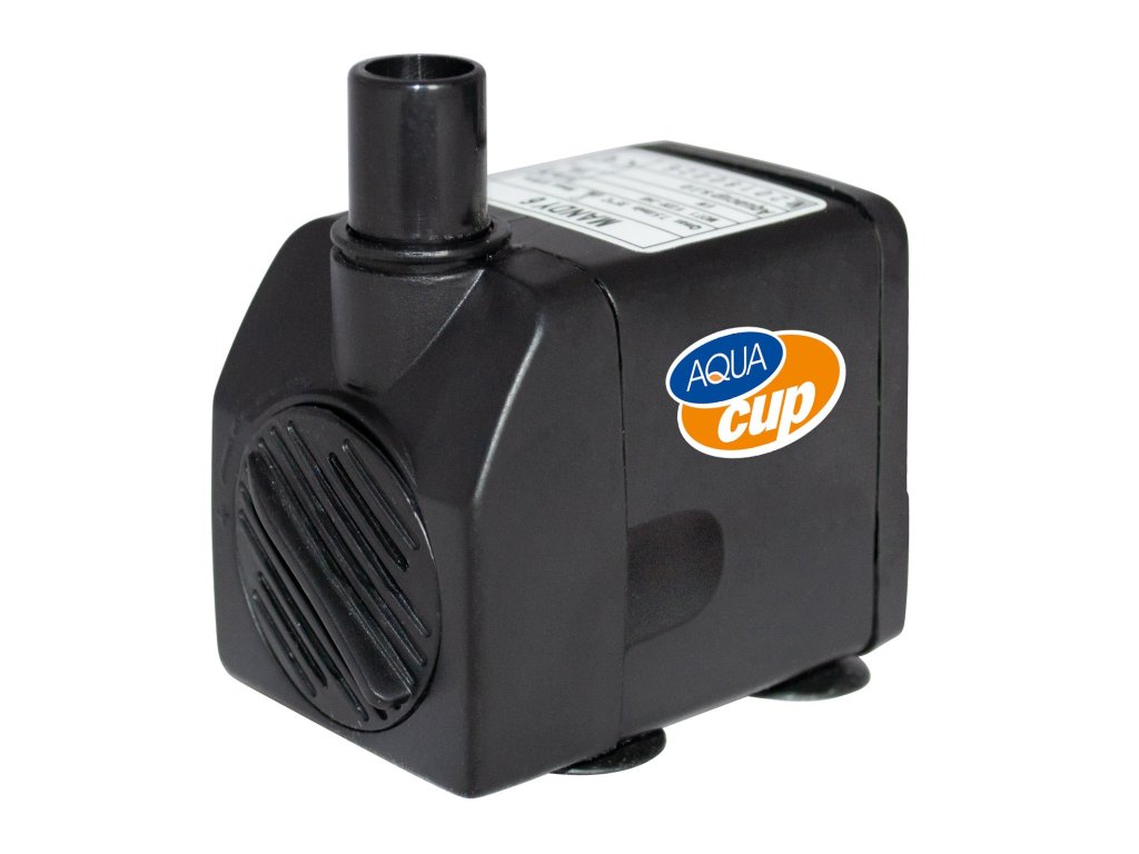 Malé fontánové čerpadlo s 5m připojovacím kabelem, předfiltrem a tryskou, vhodné pro bytové fontány a malá jezírka.