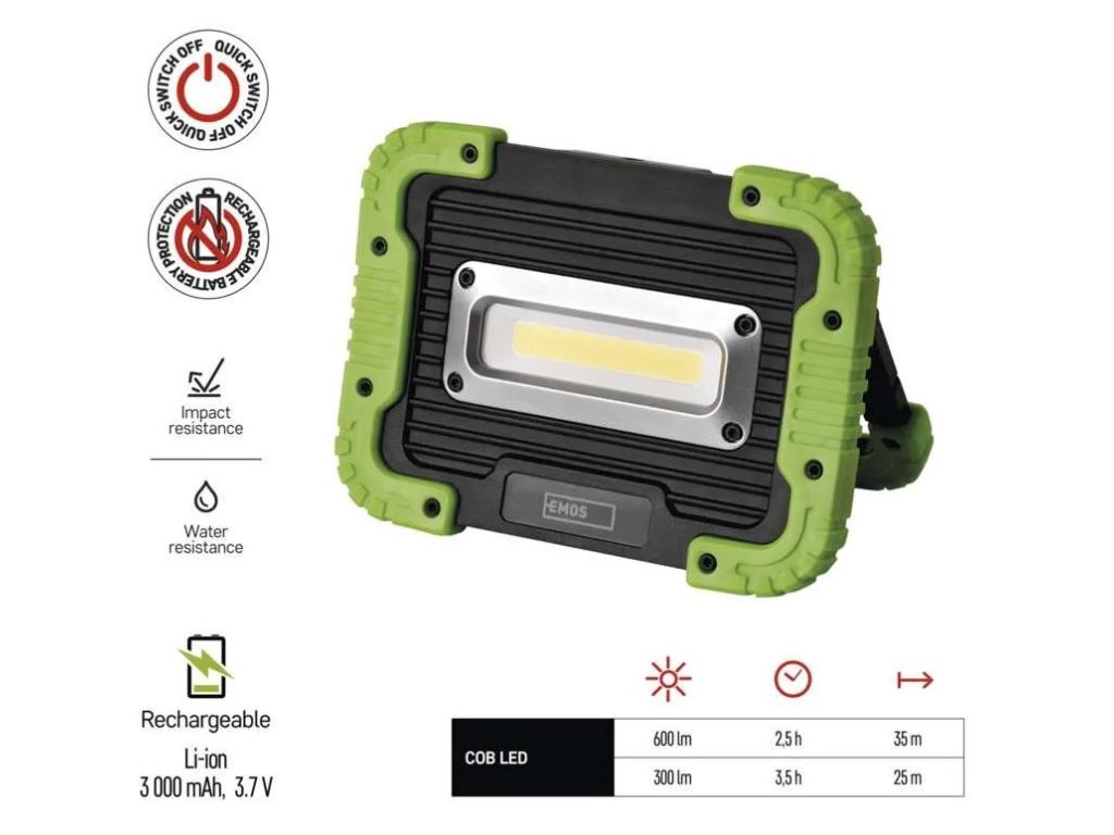 COB LED nabíjecí pracovní reflektor 600 lm, 3000 mAh