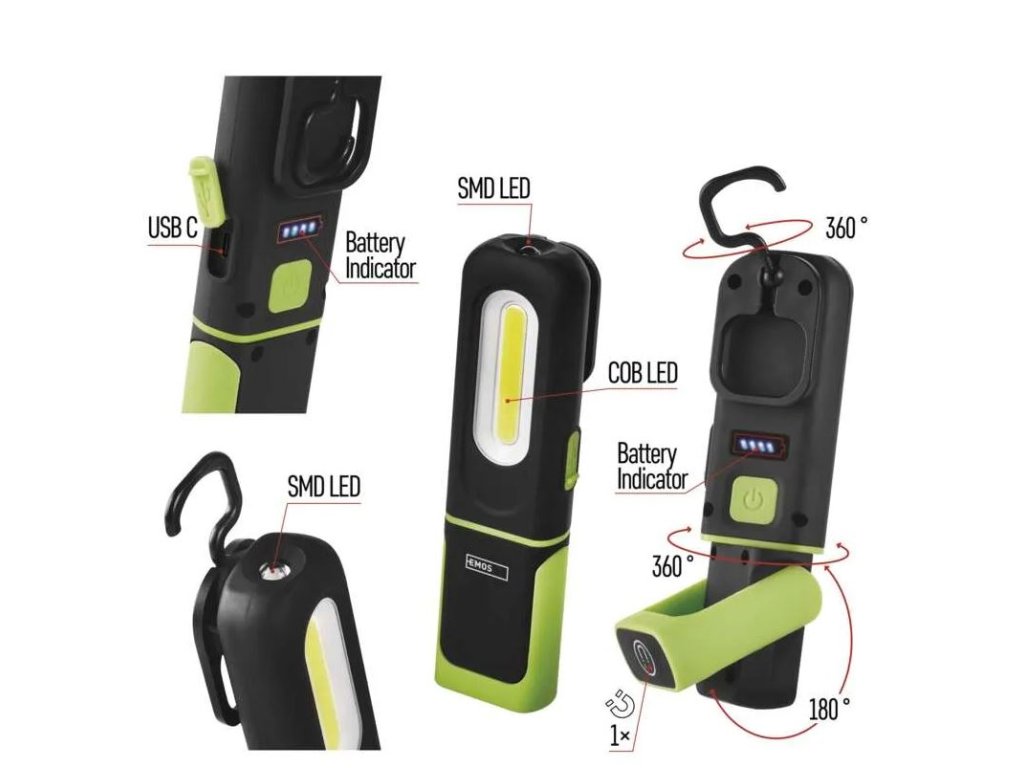 COB LED + SMD LED nabíjecí pracovní svítilna 330 lm, 1200 mAh