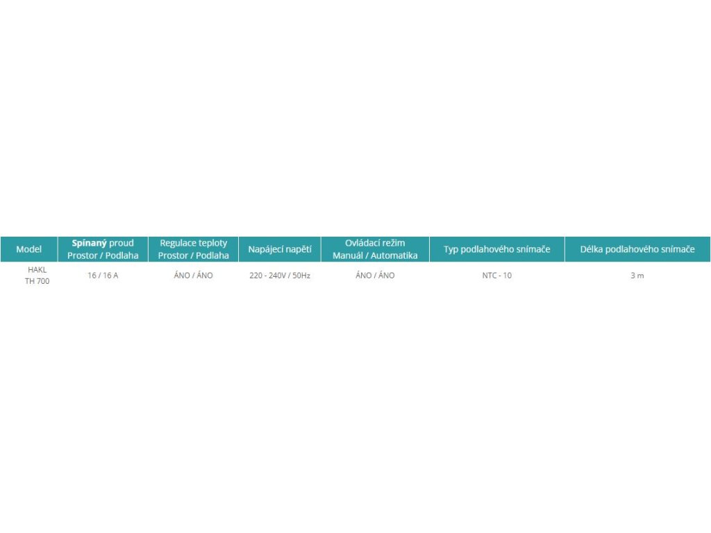 Termostat HAKL TH 700 s vestavěným snímačem, prodlouženým podlahovým čidlem, s programovatelným časovačem a dotykovým ovládáním. Při týdenním cyklu lze nastavit časové...