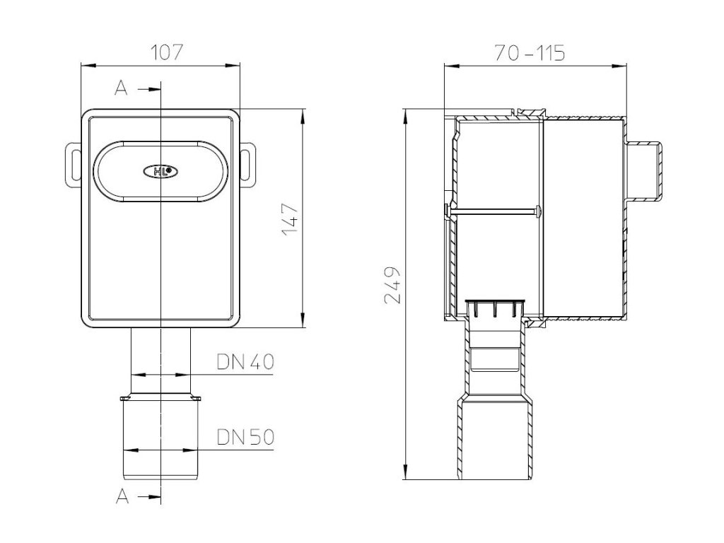 - připojení podomítkové umyvadlové zápachové uzávěry se provede pomocí kompletační sady HL4000.3 a HL134.1K popř. HL134.1C