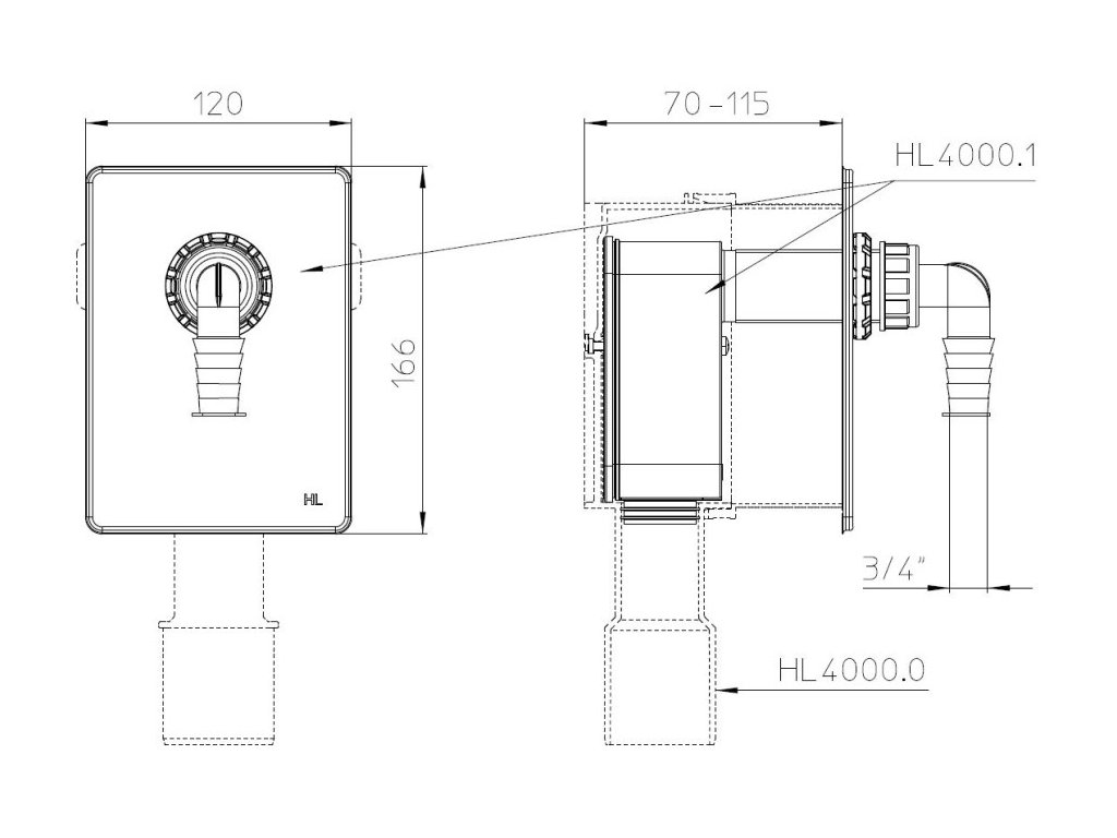 HL sifon pračkový kompletační sada pro jeden spotřebič 120x166mm