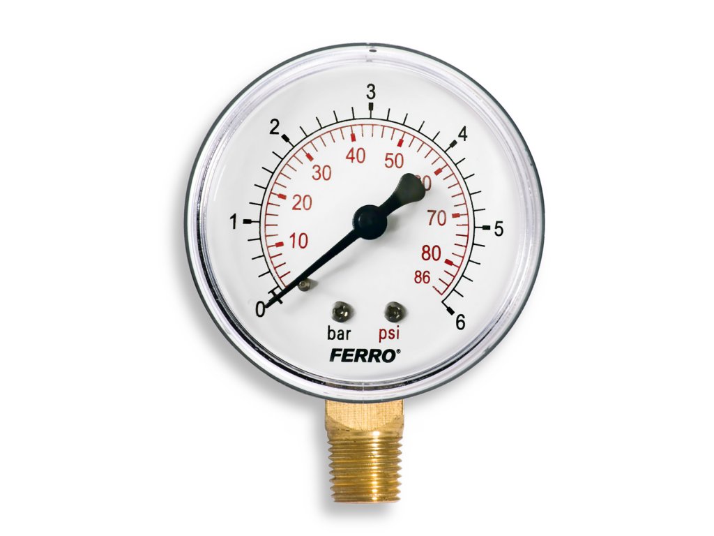 Manometr 0-6bar, 63mm, 1/4", spodní