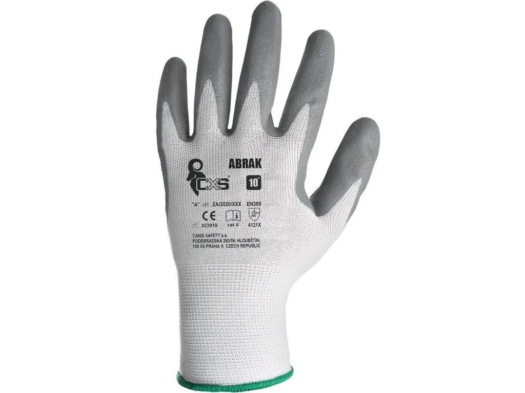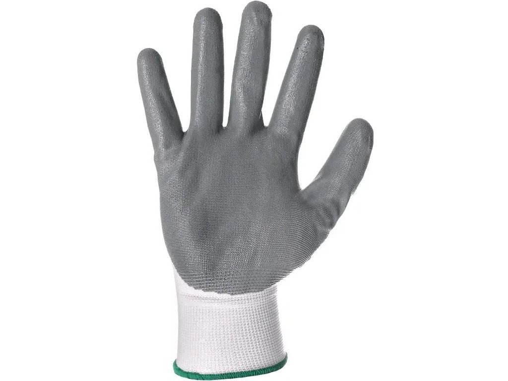 Pletené bezešvé rukavice s pružnou manžetou, dlaň a prsty povrstveny nitrilovou pěnou.