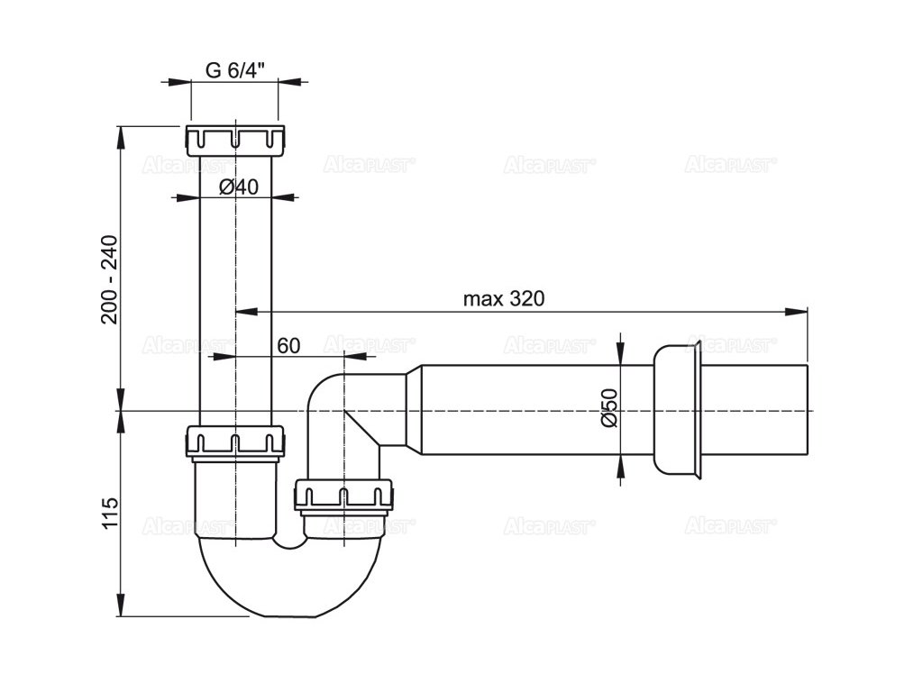- Pro dřez - Napojení na odpadní trubku O50 mm - Materiál: polypropylen