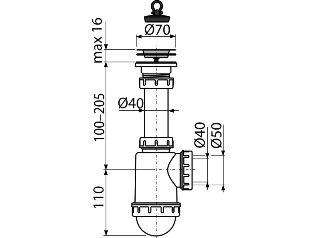 - Pro dřez - Vývod odpadu připraven pro napojení odpadní trubky O50 nebo O40 mm - Materiál: polypropylen
