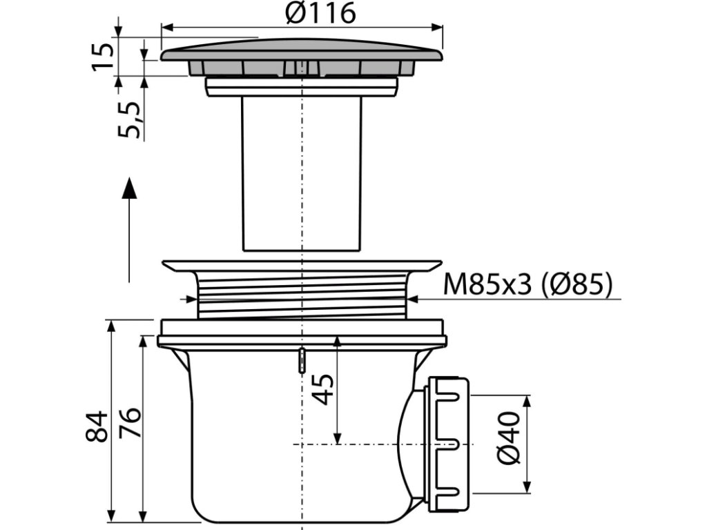 - Pro sprchové vaničky s odtokovým otvorem O90 mm