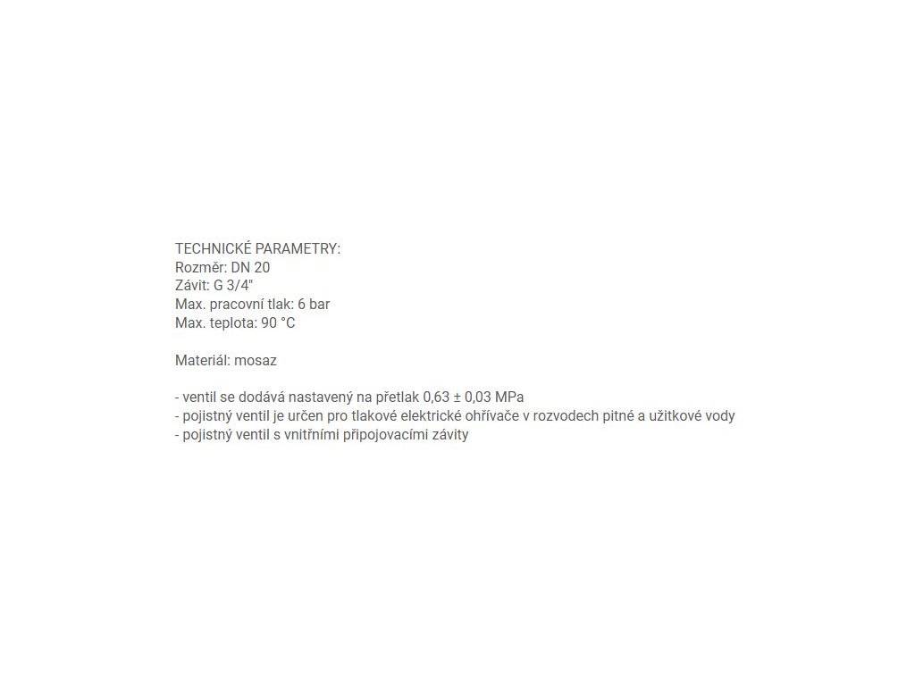 SLOVARM TE2852 pojistný ventil 3/4", 6bar, pro elektrické ohřívače