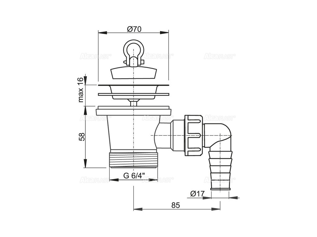 Výpust dřezová 6/4" s přípojkou CR A33P