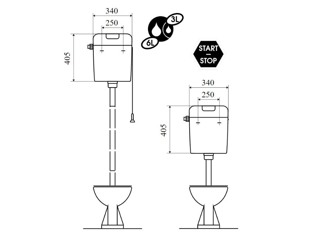 - Možnost nastavení vypouštění objemu vody 3/6 litrů.