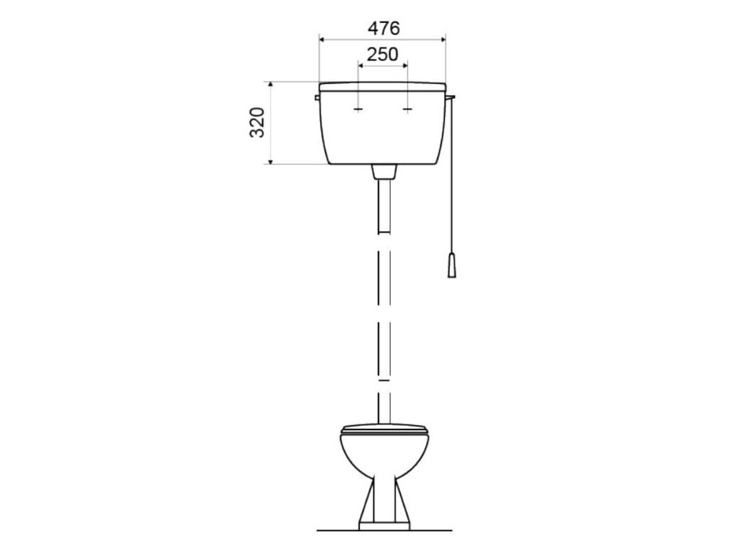 Plastový nádržkový splachovač T-2454, objem 9 L a způsob vypouštění DUAL, přívod vody a ovládání zprava nebo leva, ovládání splachovací šňůrkou, možnost splachování 3/9 l, pro vysokou montáž. Pro vysokou montáž je možno dokoupit - splachovací komplet T-2448B/IV 620766 (PLA0150233).