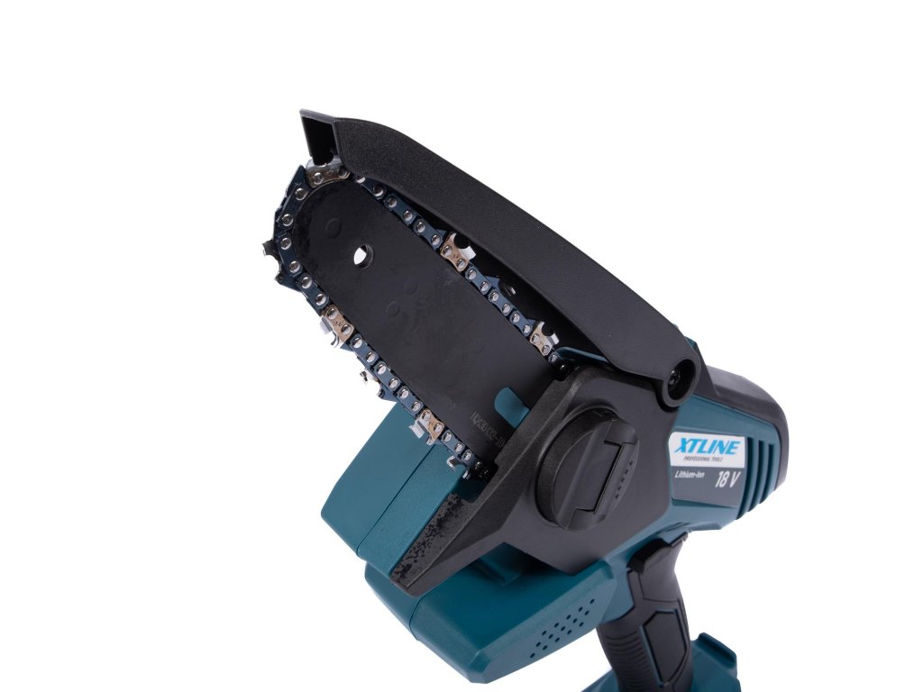 Mini řetězová pila slouží k prořezávání větví, keřů, nebo menších stromů s maximálním prořezem 110 mm. Velkou výhodou je ovládání pouze jednou rukou a bezpečnou práci zajišťují ergonomicky pogumovaná rukojeť a kryt řetězu.