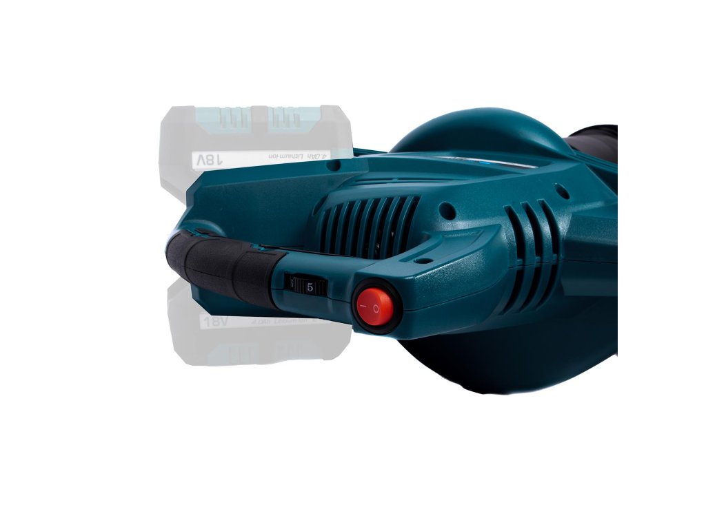 Výkonný akumulátorový zahradní vysavač je poháněn dvěma 18V Li-Ion bateriemi a slouží k vysávání a ofukování listí a zahradních nečistot. Regulace otáček a nízká hmotnost zajišťují při úklidu zahrady snadné ovládání.